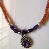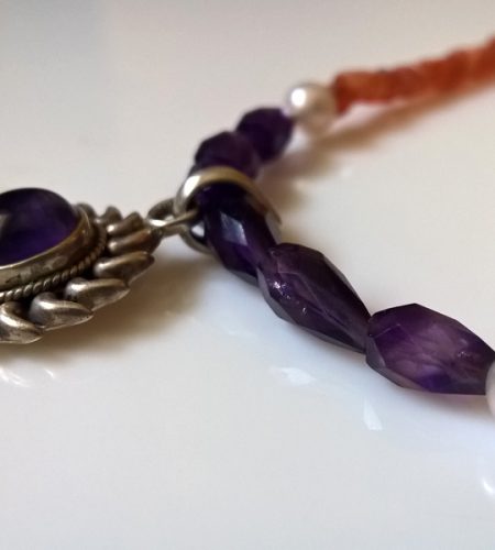 Amethyst and Carnelian Beads Necklace with Amethyst Pendant