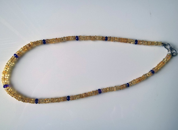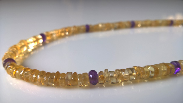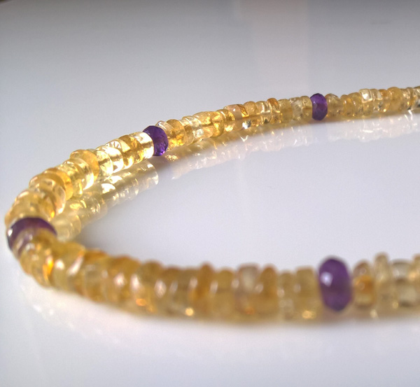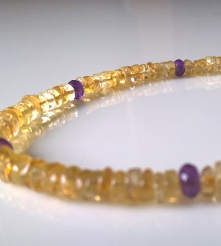 This exquisite necklace is made with Citrine and beautiful faceted Amethyst beads. The necklace length is about 17 inches and it will come with a sterling silver clasp.