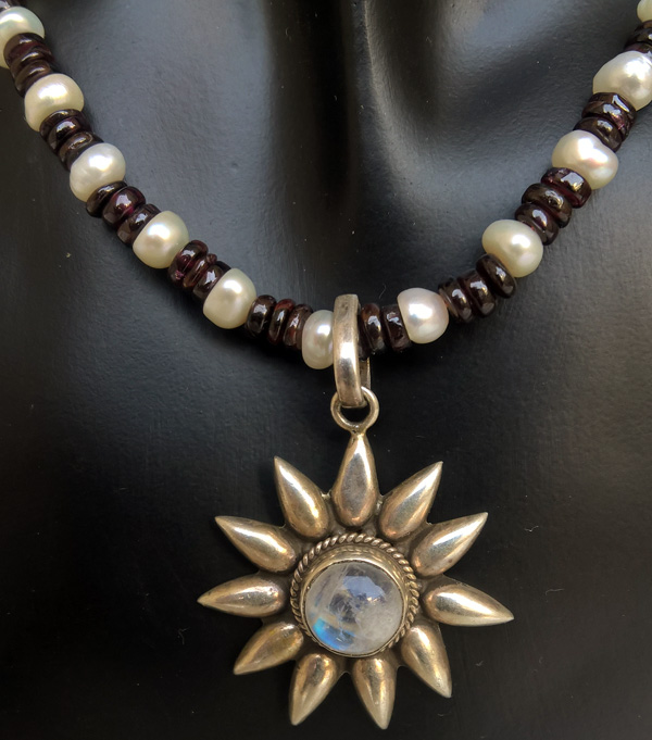 Garnet and Pearl Necklace with Labradorite Pendant